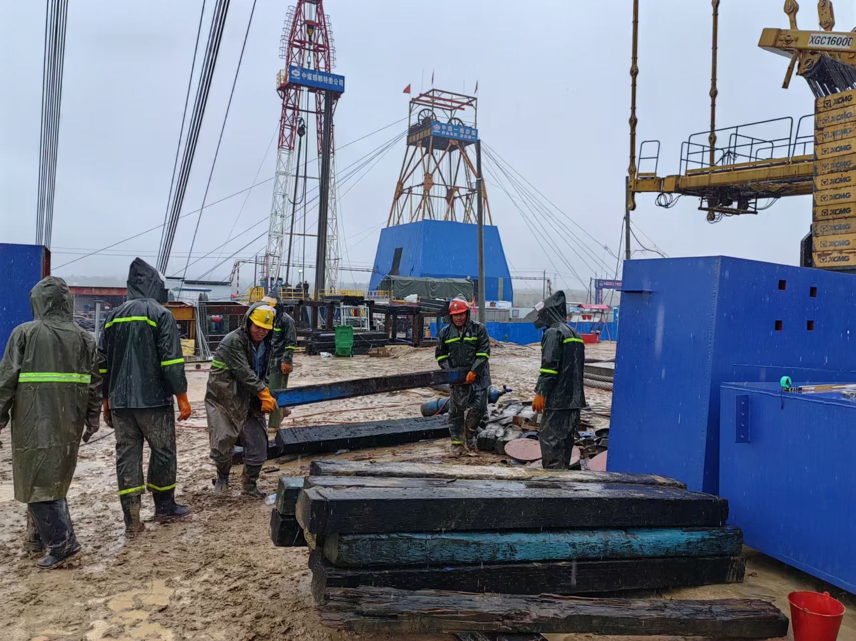 八月以来,天气逐渐步入了多雨期,连日来的大雨为工程类项目的施工增加了额外的阻力,给现场的施工带来了诸多不便。海则滩副井安装工程正值抢工期、赶进度、抓主体建设的关键施工期,为全力加快推动项目建设,项目部全体职工无畏风雨奋战在项目施工最前线,全力以赴与不利天气作斗争,用责任与担当有条不紊推动副井井架安装工程顺利进行。